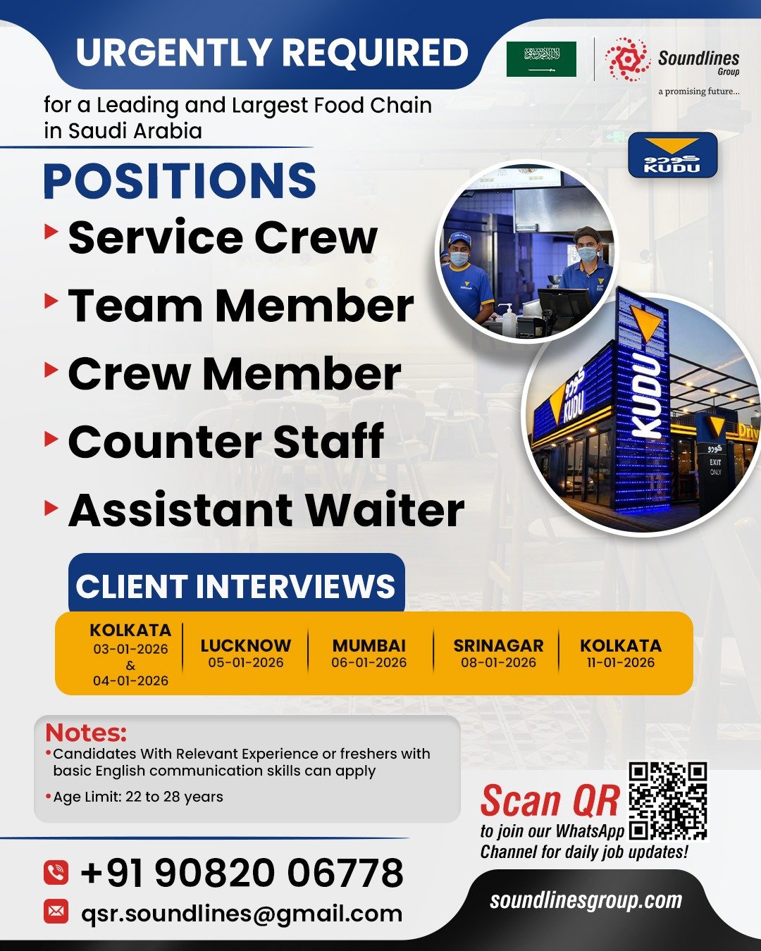 To apply kindly send your resume to qsr.soundlines@gmail.com