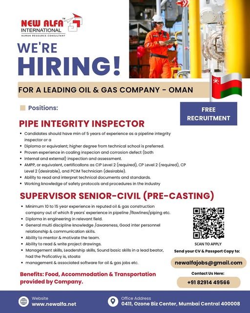 Send your CV & Passport copy to: newalfajobs@gmail.com