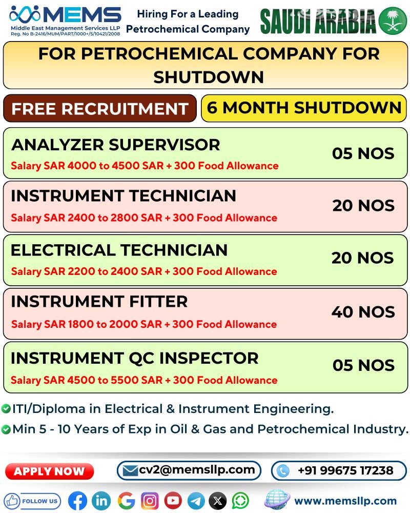 hiring for a Leading Petrochemical Company in Saudi Arabia