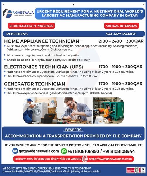 hiring for a multinational, world’s largest AC manufacturing company in Qatar.