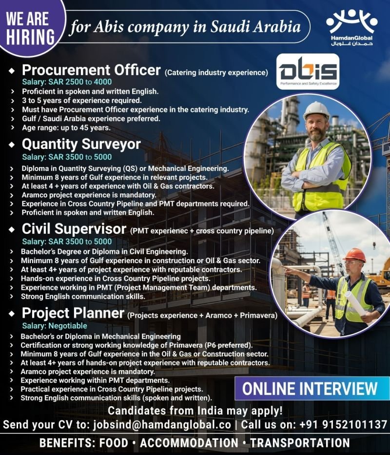 - Civil Supervisor (PMT experience + Cross Country Pipeline)