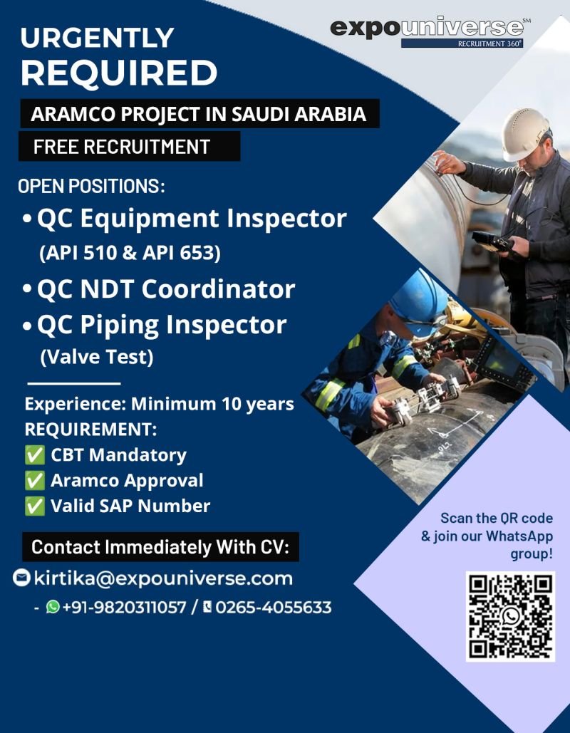 Hiring For Aramco Projects in Saudi Arabia
