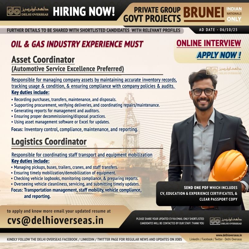 We are looking for Asset Coordinators & Logistics Coordinators with Oil & Gas experience.