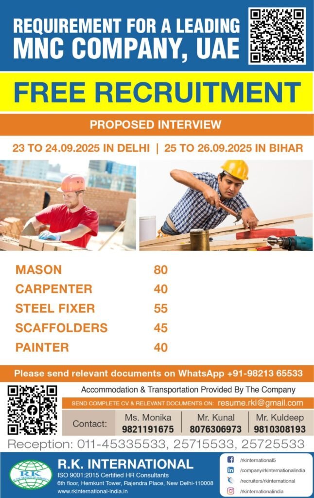 Hiring For Kuwait,UAE,Oman & Saudi Arabia