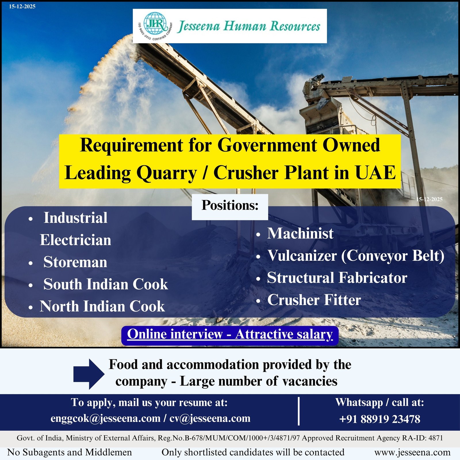 [Note: We try to provide genuine jobs .We dont have any role in Recruitment Process.Please enquiry about the Recruiting Agent before you accept the Job Offer / Pay any Money to them]
