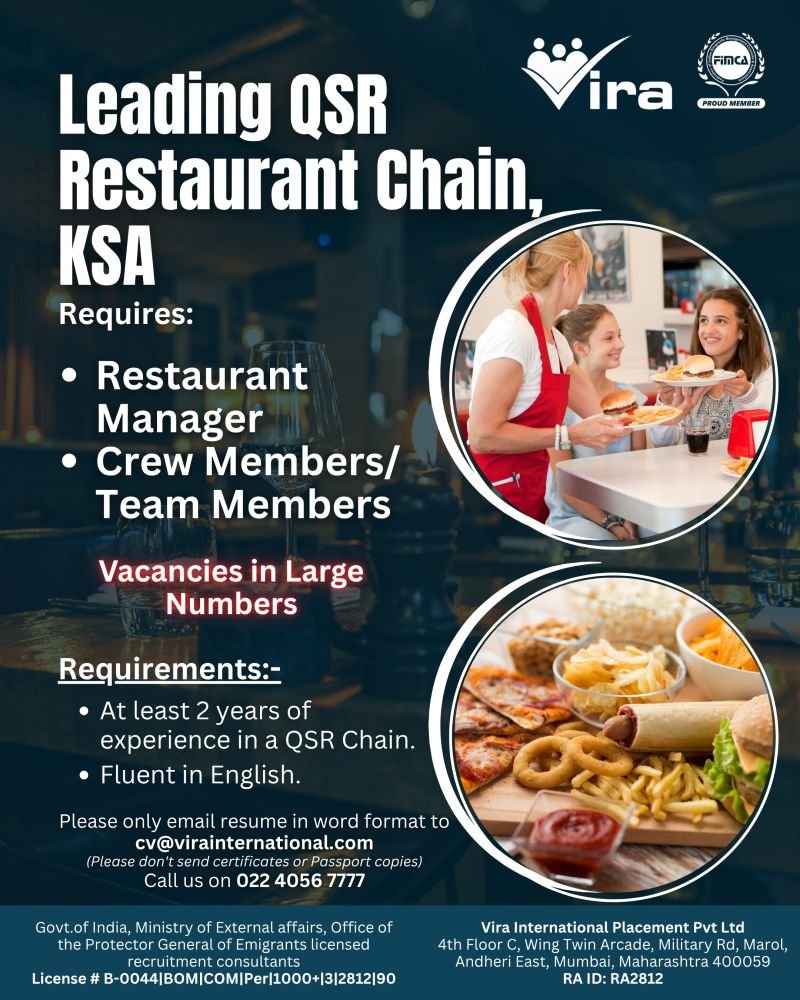 Top hospitality brands in Saudi Arabia are looking for Restaurant Managers and Crew Members/Team Members to join their fast-growing teams!