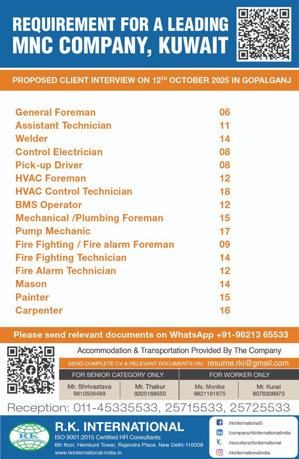 Hiring For MNC Company in Kuwait & Saudi Arabia