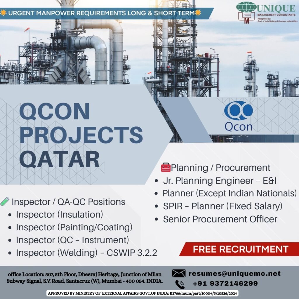 hiring for QCON (Qatar) – Long & Short Term