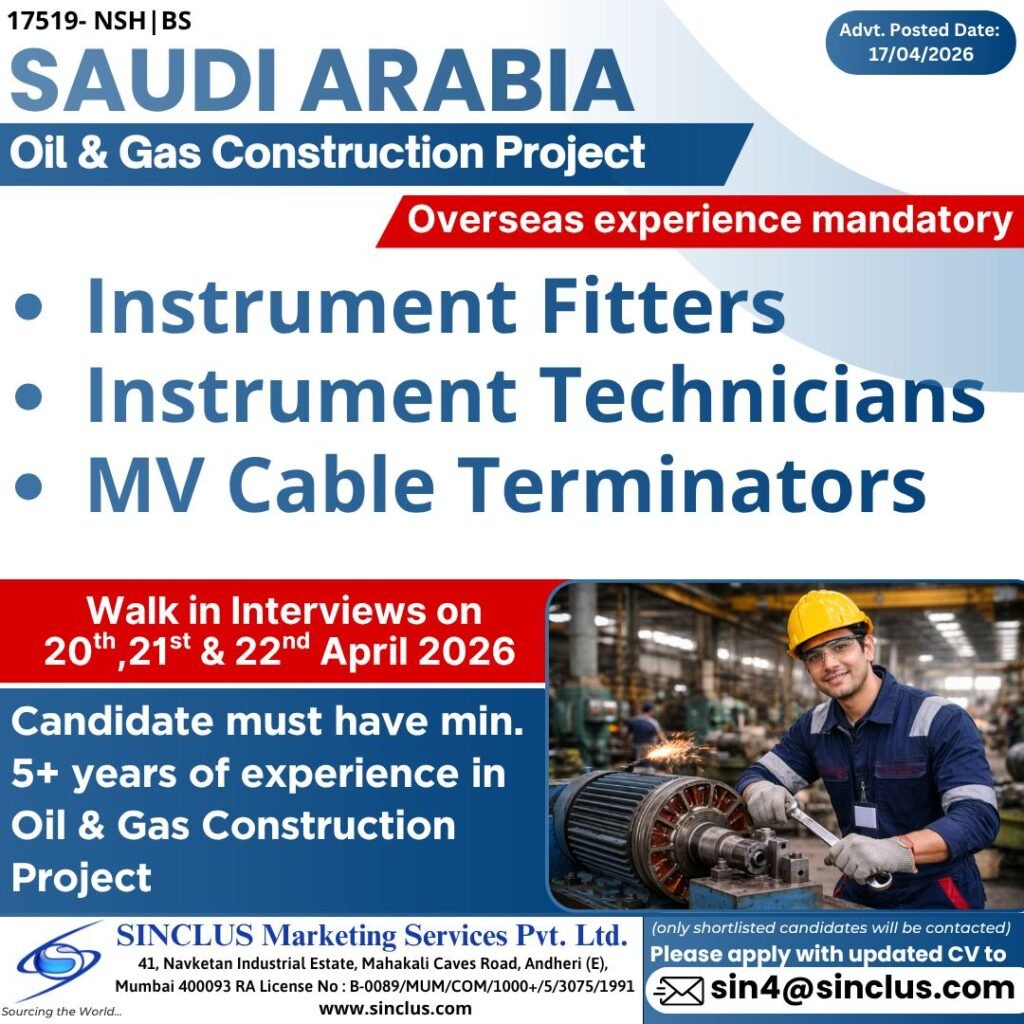 Hiring For Saudi Arabia – Oil & Gas Projects