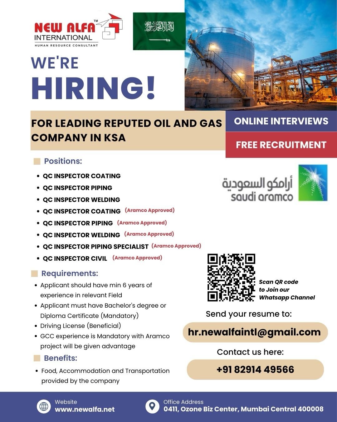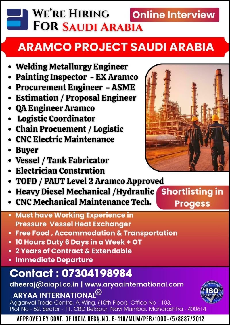 Hiring Mechanical Engineer & Foreman For Saudi Arabia