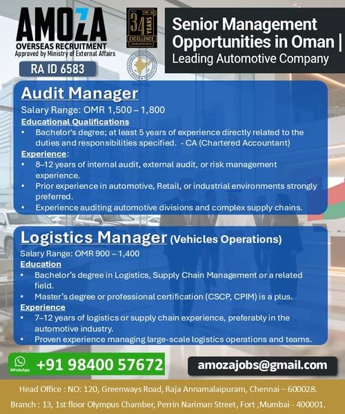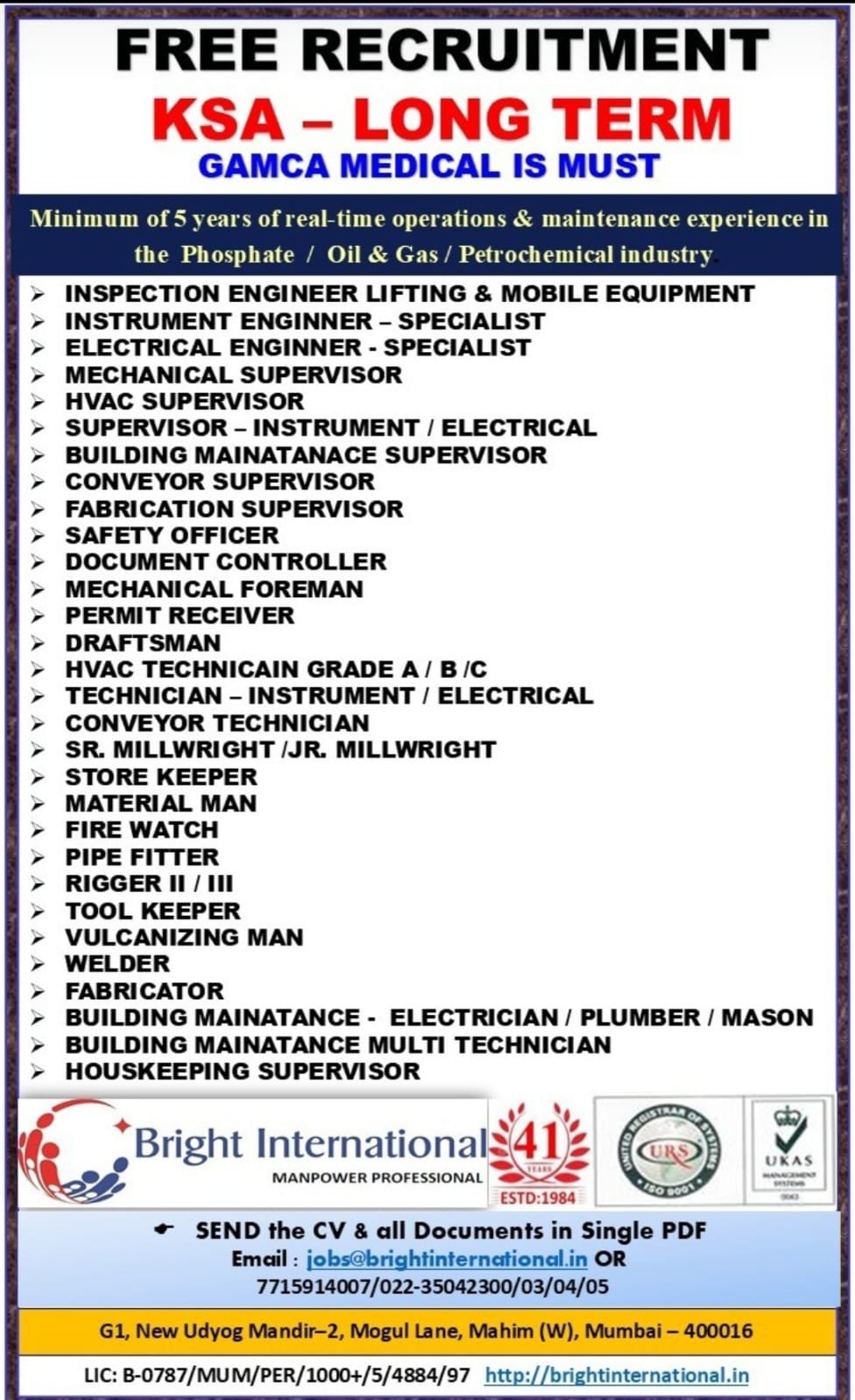 [Note: We try to provide genuine jobs .We dont have any role in Recruitment Process.Please enquiry about the Recruiting Agent before you accept the Job Offer / Pay any Money to them]
