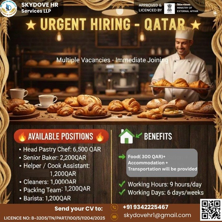 Urgent Qatar Jobs 2025 – Premium Bakery & Pastry Chain
