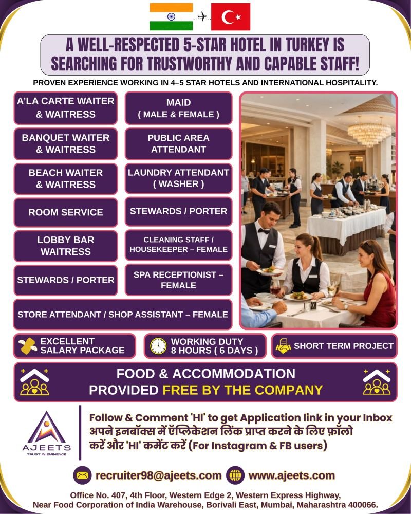Urgent hiring for a 5-star hotel in Turkey – Apply Today