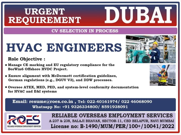 Urgent Hiring HVAC Engineers in Dubai : CV Selection In Progress