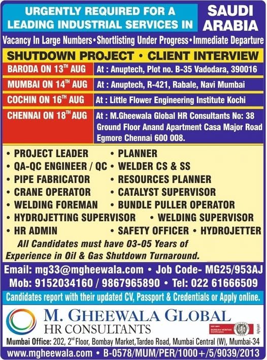 Apply Now » RECRUITING FOR INDUSTRIAL SERVICES COMPANY – SAUDI ARABIA