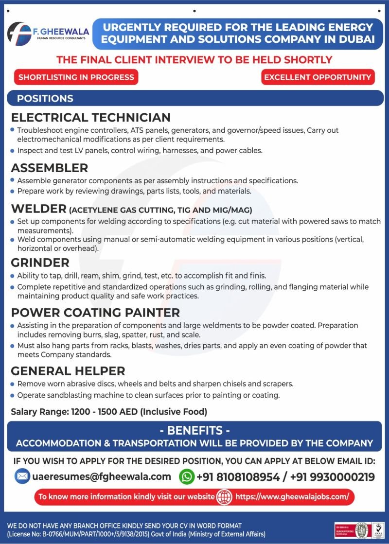 F. Gheewala HR Consultants is hiring for a leading Energy Equipment & Solutions company in Dubai.