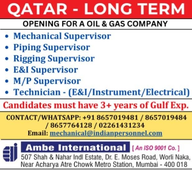 Job Opening for a Leading Oil & Gas Company in QATAR (Long Term)