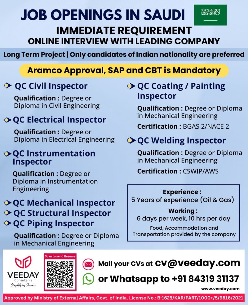 Qualification : Degree or Diploma in Instrumentation Engineering