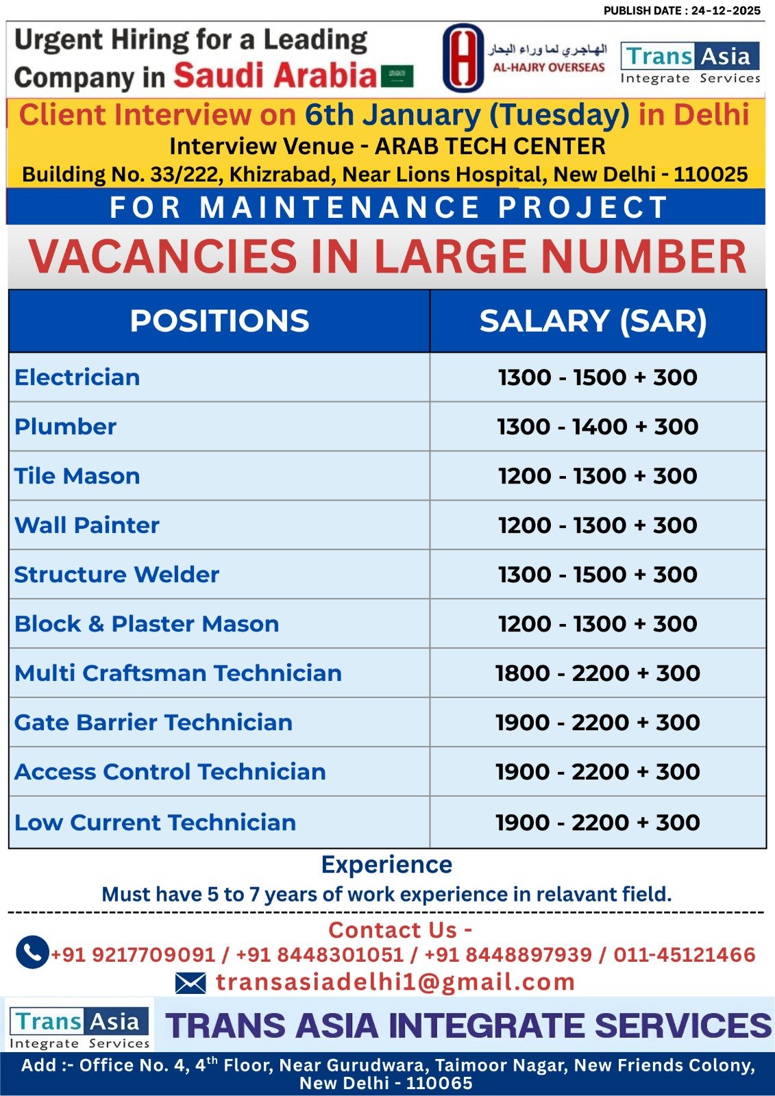 [Note: We try to provide genuine jobs .We dont have any role in Recruitment Process.Please enquiry about the Recruiting Agent before you accept the Job Offer / Pay any Money to them]