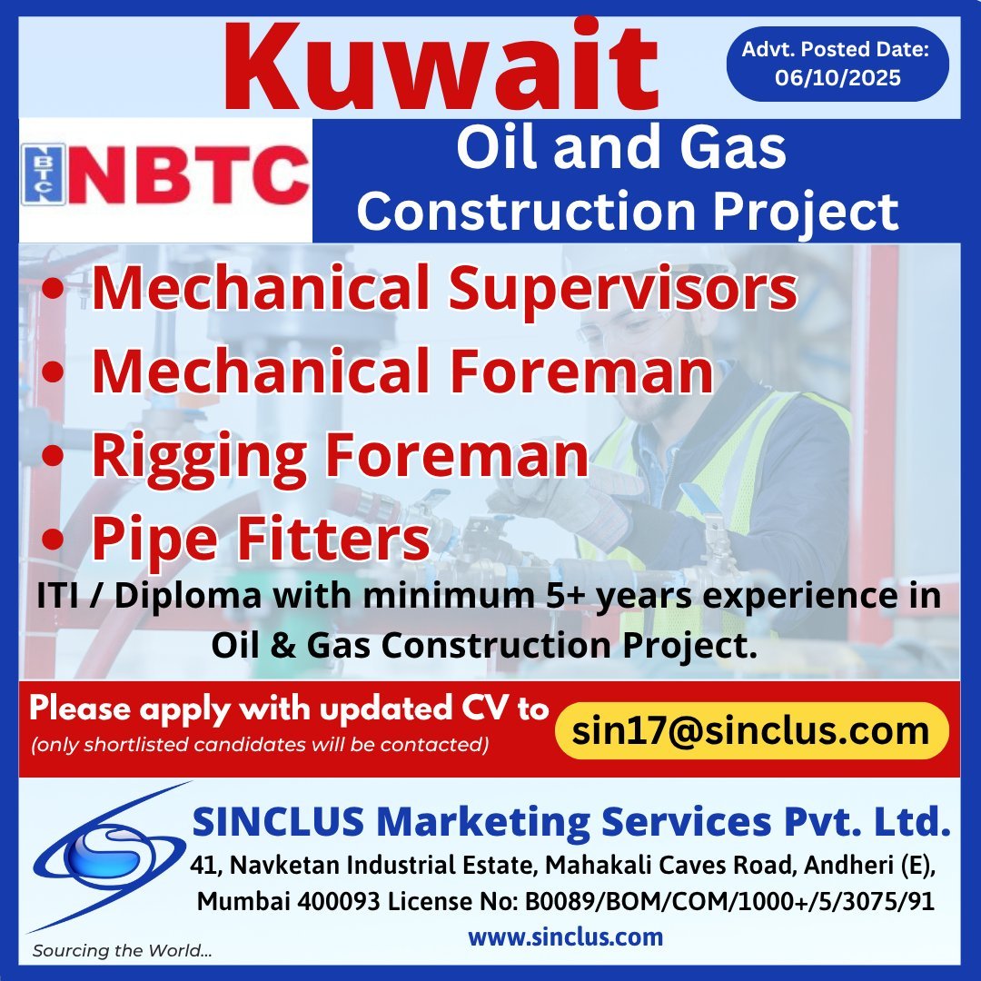 Are you an experienced professional in the oil and gas sector? NBTC is hiring for its construction project in Kuwait. Posted on 06/10/2025, this is your chance to join a prestigious project. Check out the available positions and apply today!