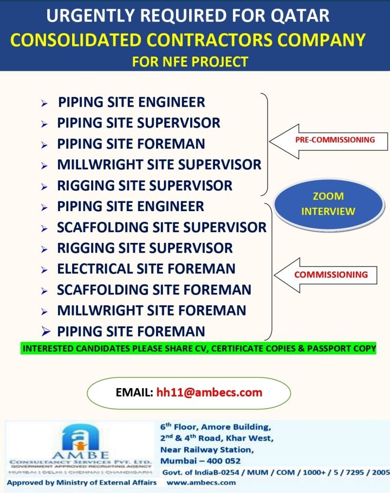 Are you seeking urgent job opportunities in 2025? Consolidated Contractors Company (CCC) is urgently recruiting for the NFE Project in Qatar. With Zoom interviews scheduled for pre-commissioning and commissioning roles, this is an excellent chance to join a prestigious project. Explore the available positions and learn how to apply below.