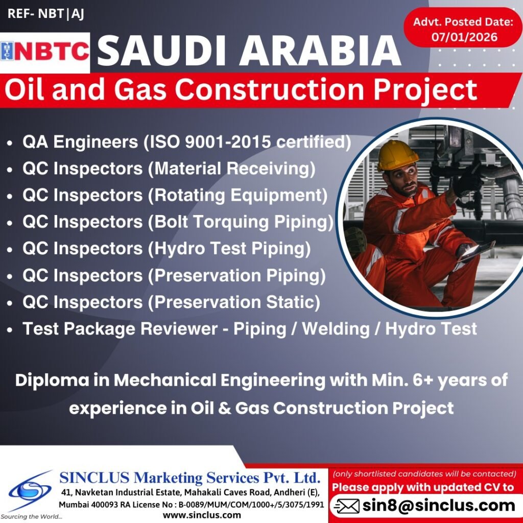 Are you a qualified QC professional with experience in oil & gas construction? A major Oil and Gas Construction Project in Saudi Arabia requires experienced candidates with mandatory Saudi ARAMCO Approval. This is a high-demand opportunity in one of the world’s largest energy sectors, offering long-term stability and competitive benefits.