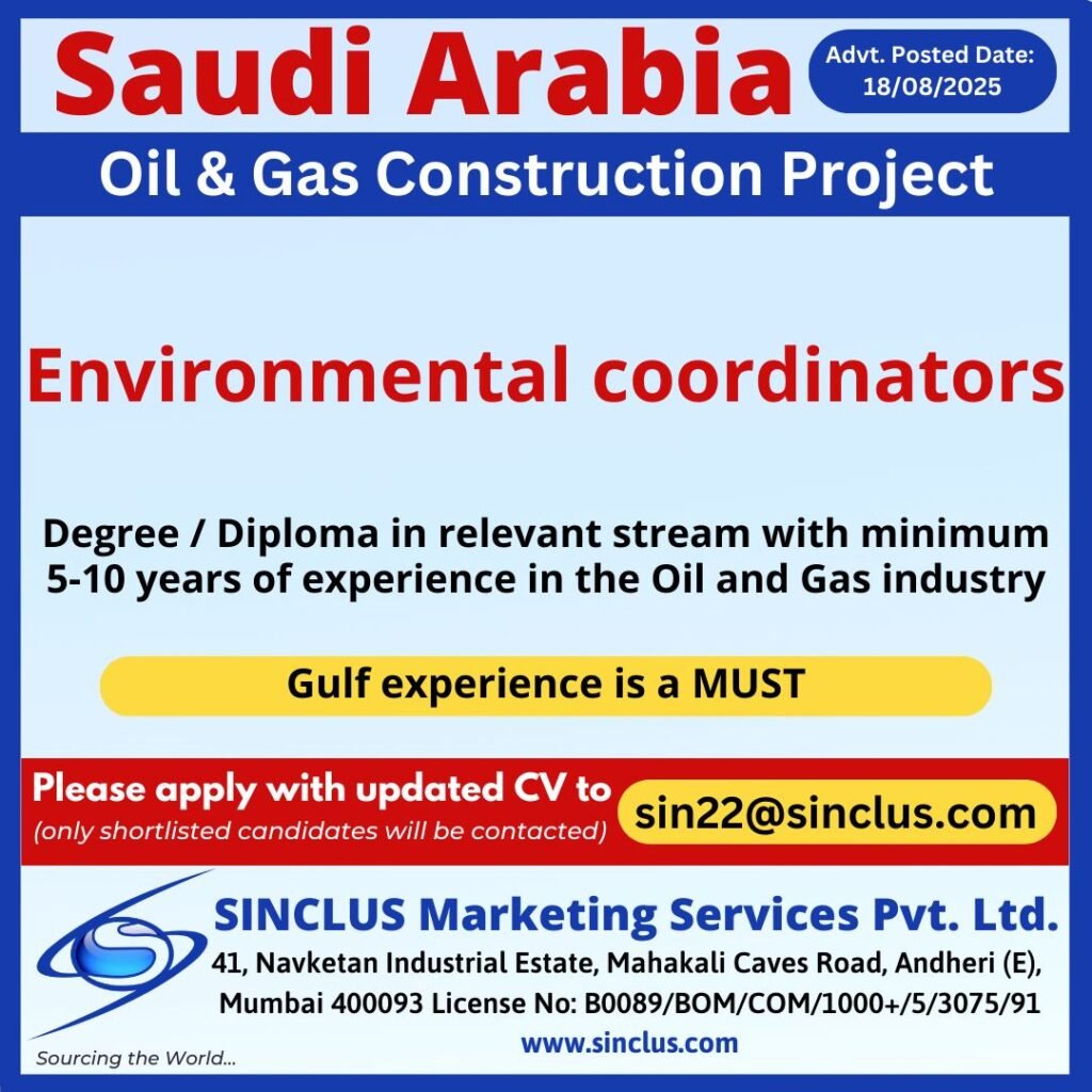 Sinclus Marketing Services Pvt. Ltd. is hiring trainers for a prestigious oil and gas construction project in Saudi Arabia. Apply now with your updated CV—interviews are ongoing!