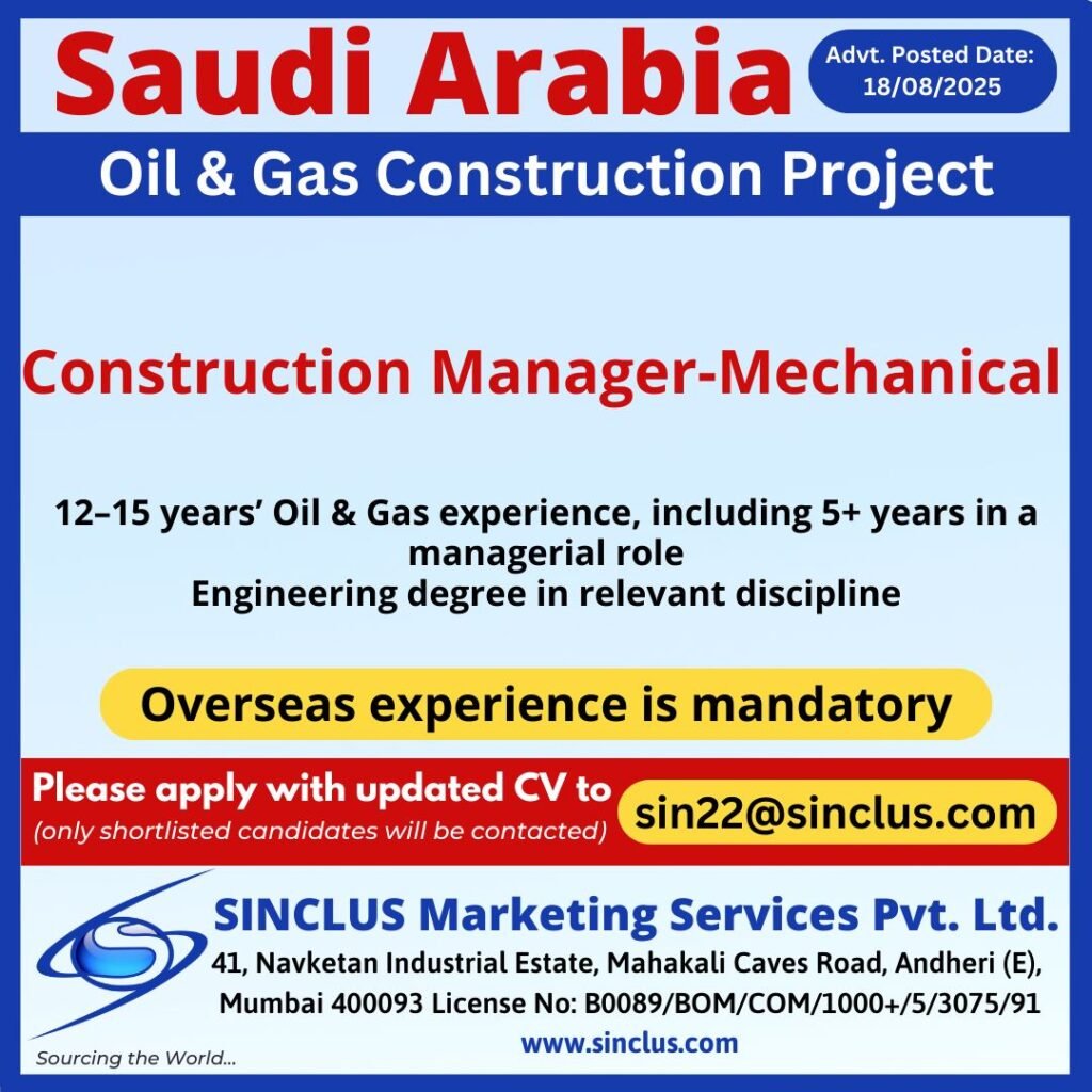 Job Opportunities in Saudi Arabia – Oil & Gas Construction Project