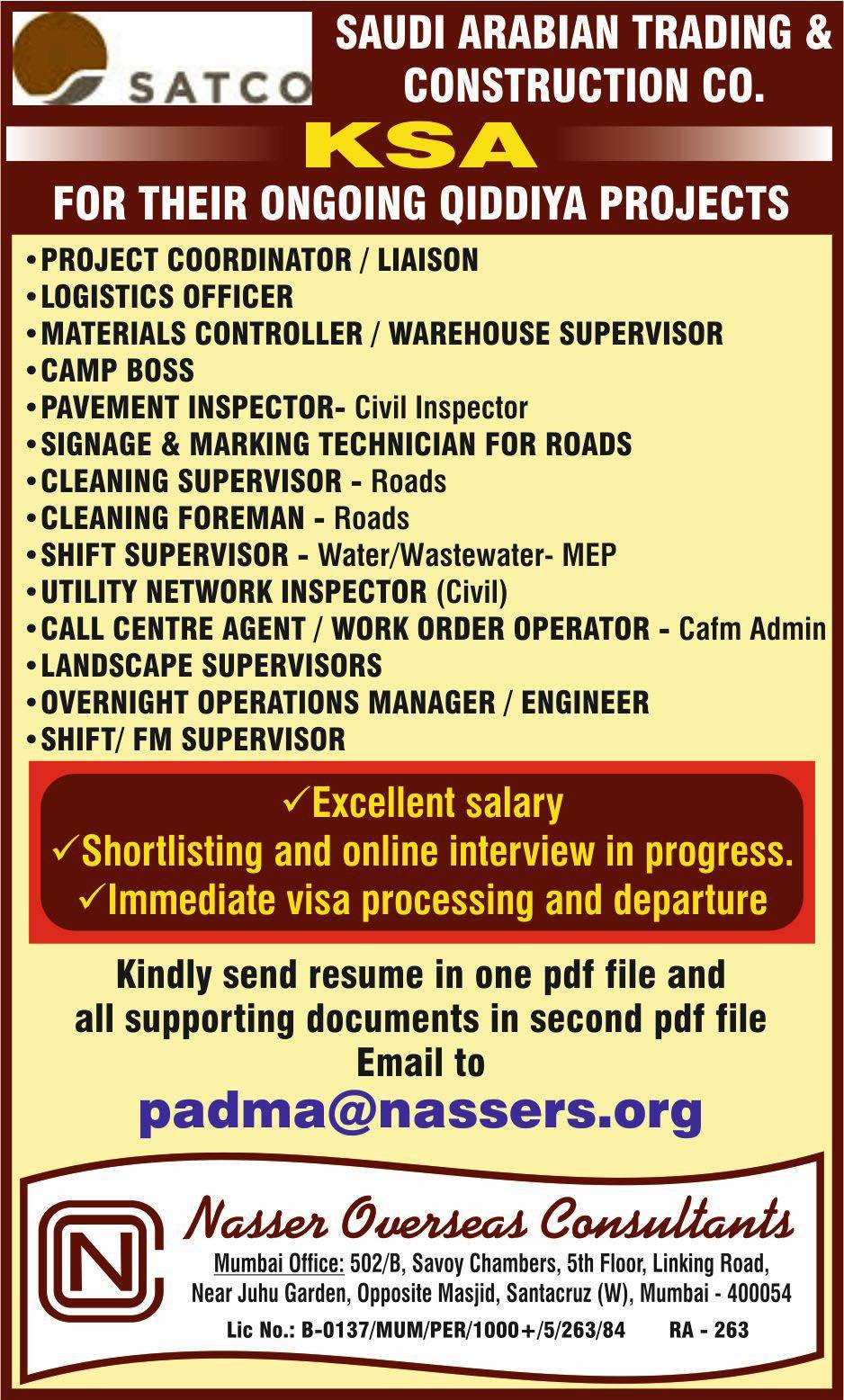 Looking for a rewarding career in Saudi Arabia? Saudi Arabian Trading & Construction Co. (SATCO) is hiring for their ongoing Qiddiya projects. With excellent salary, immediate visa processing, and departure, this is an opportunity you don’t want to miss. Apply today!
