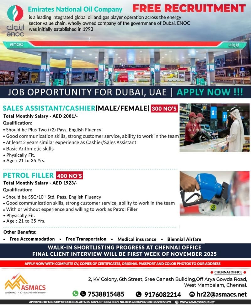 Job Opportunity for Dubai, UAE with ENOC – Apply Now!!