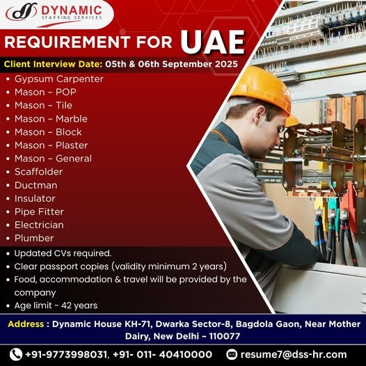 Job Requirement for UAE – Apply Now