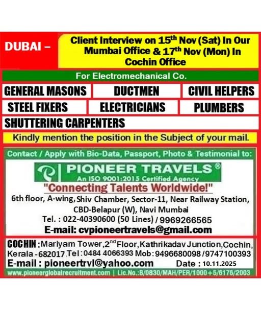 Jobs in Dubai : Hiring For the Electromechanical Company