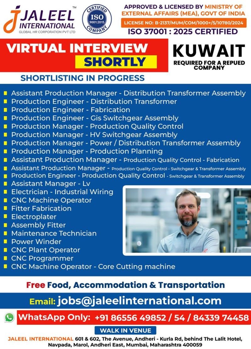 Kuwait Jobs 2025: Virtual Interviews for Reputed Company
