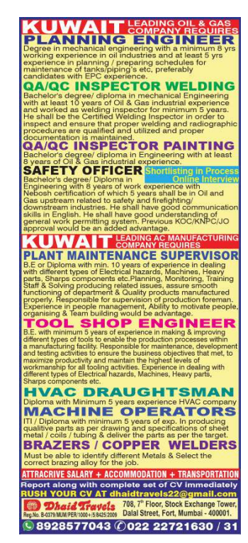 Kuwait Jobs: Hiring For Reputed company in Kuwait