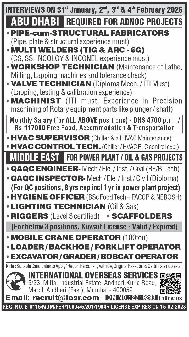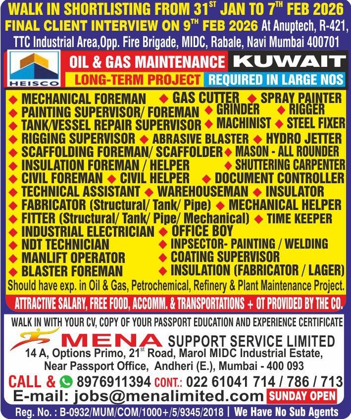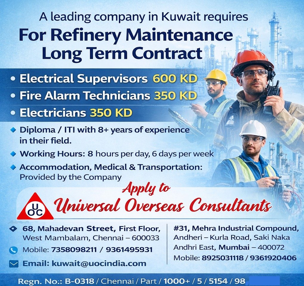 hiring in large numbers for a long-term Oil & Gas Maintenance Project in Kuwait.