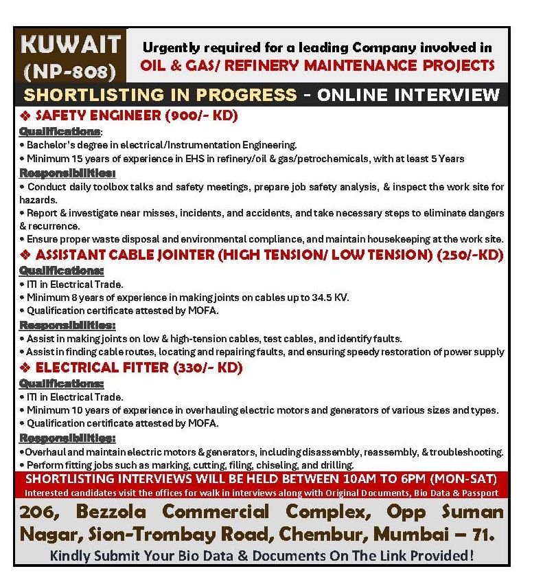Jobs in Kuwait – Oil & Gas / Refiney Maintenance Project