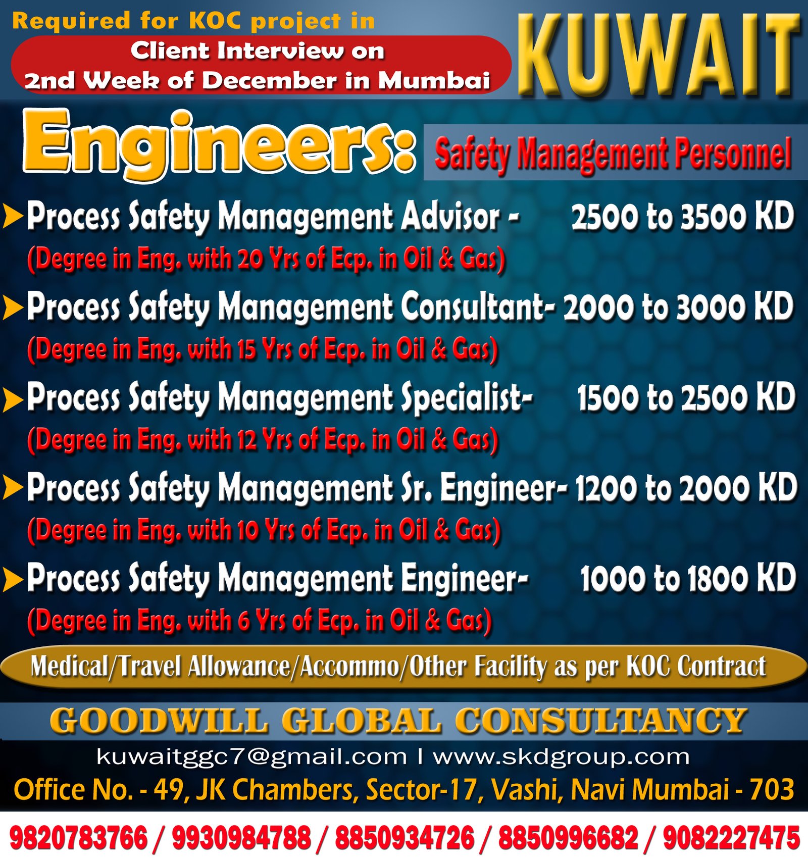 Urgent Kuwait Jobs: Process Safety Management | 1000-3500 KD