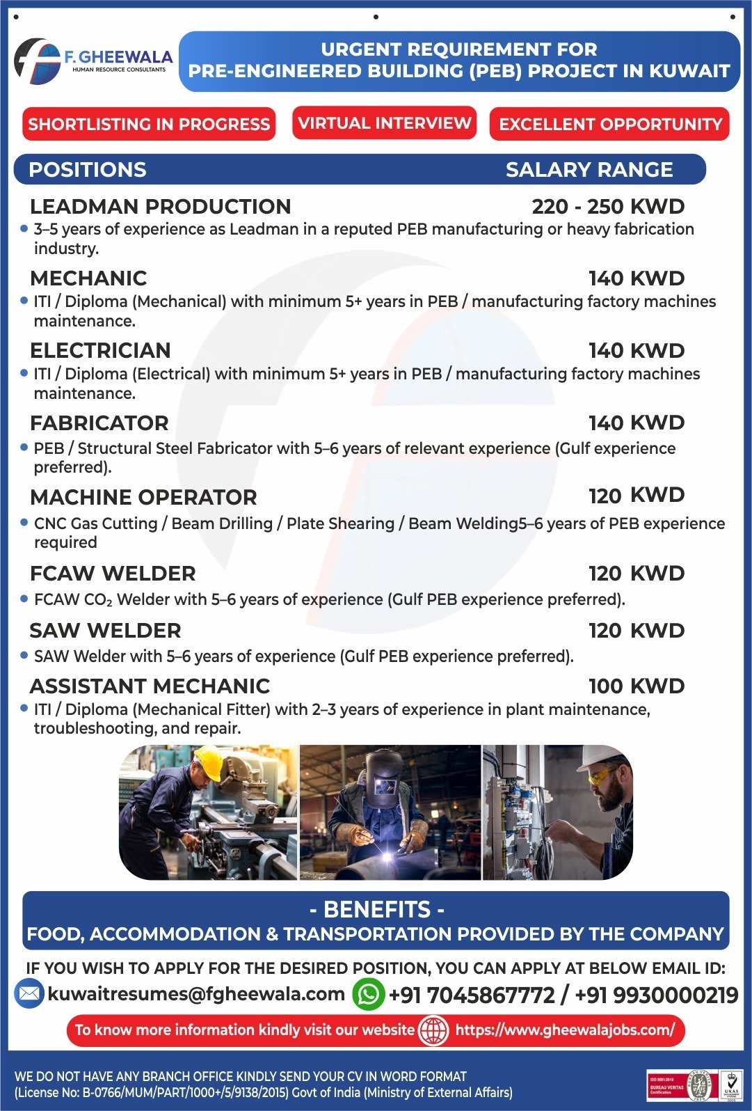 Urgent Kuwait Jobs 2025 – Pre-Engineered Building (PEB) Project
