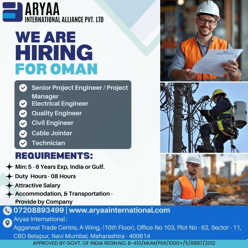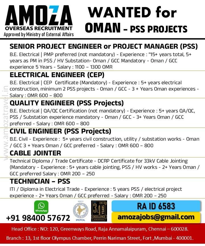 Urgent Recruitment for Oman PSS Projects – Exciting Overseas Jobs for Electrical & Civil Professionals (2026)