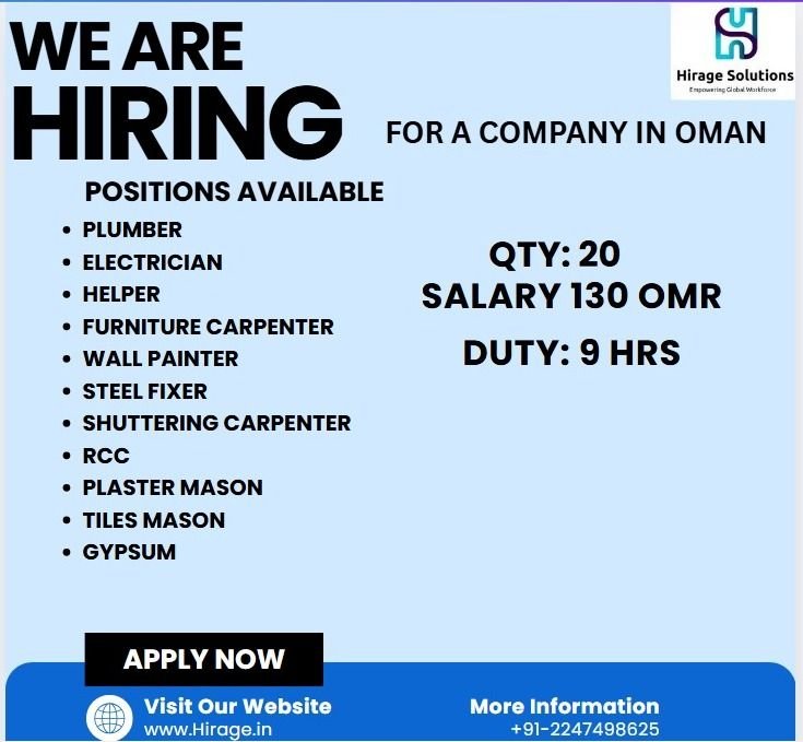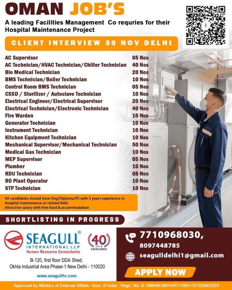 Hiring For Oman’s Leading Catering & Facility Management Company November 24, 2025 No Comments Read More »