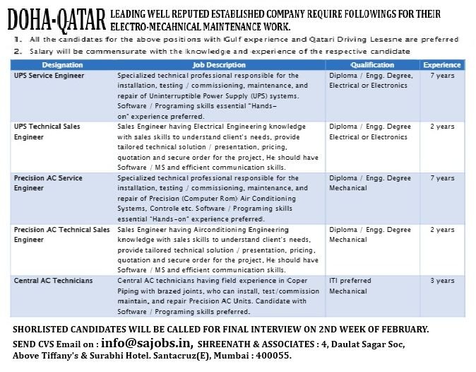 Urgent Doha Qatar Jobs 2026: Electro-Mechanical Maintenance Vacancies – Apply Now