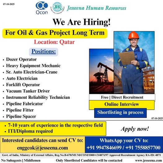 Jobs in Qatar – Hiring For Oil & Gas Project