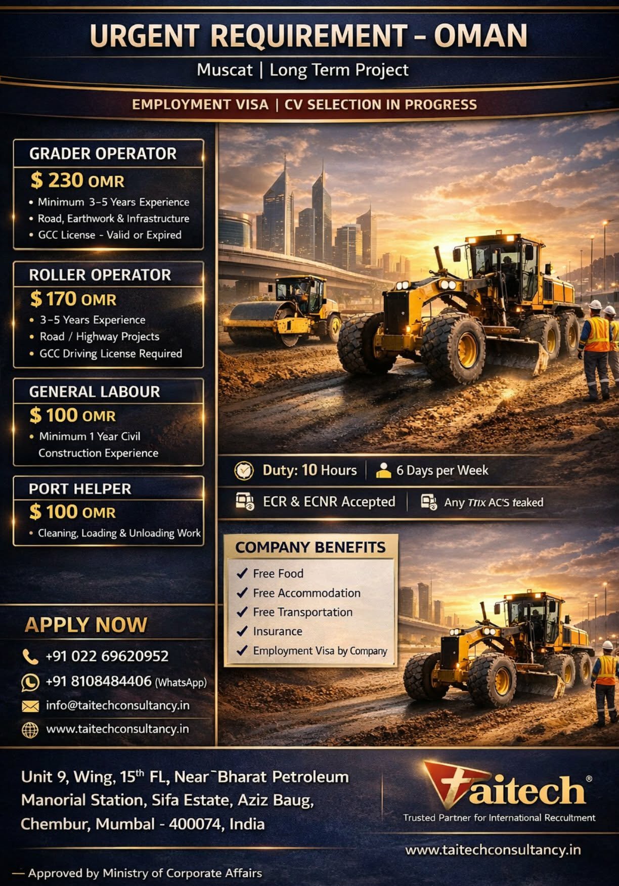 - Driving Roles: Valid Indian driving license (Saudi DL preferable) + experience with small & big vehicles