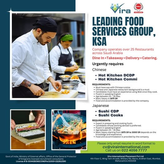 Jobs in Saudi Arabia – Hiring For A Leading Food Services Group