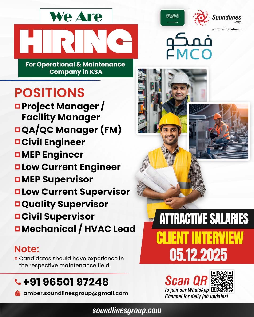 Jobs in Saudi Arabia : Job Vacancies For Operational & Maintenance FMCO Company