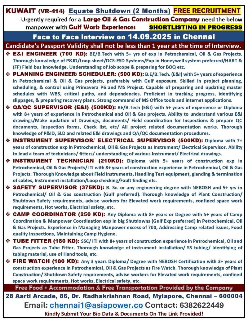 Kuwait – Equate Shutdown Jobs ( 2 Month )