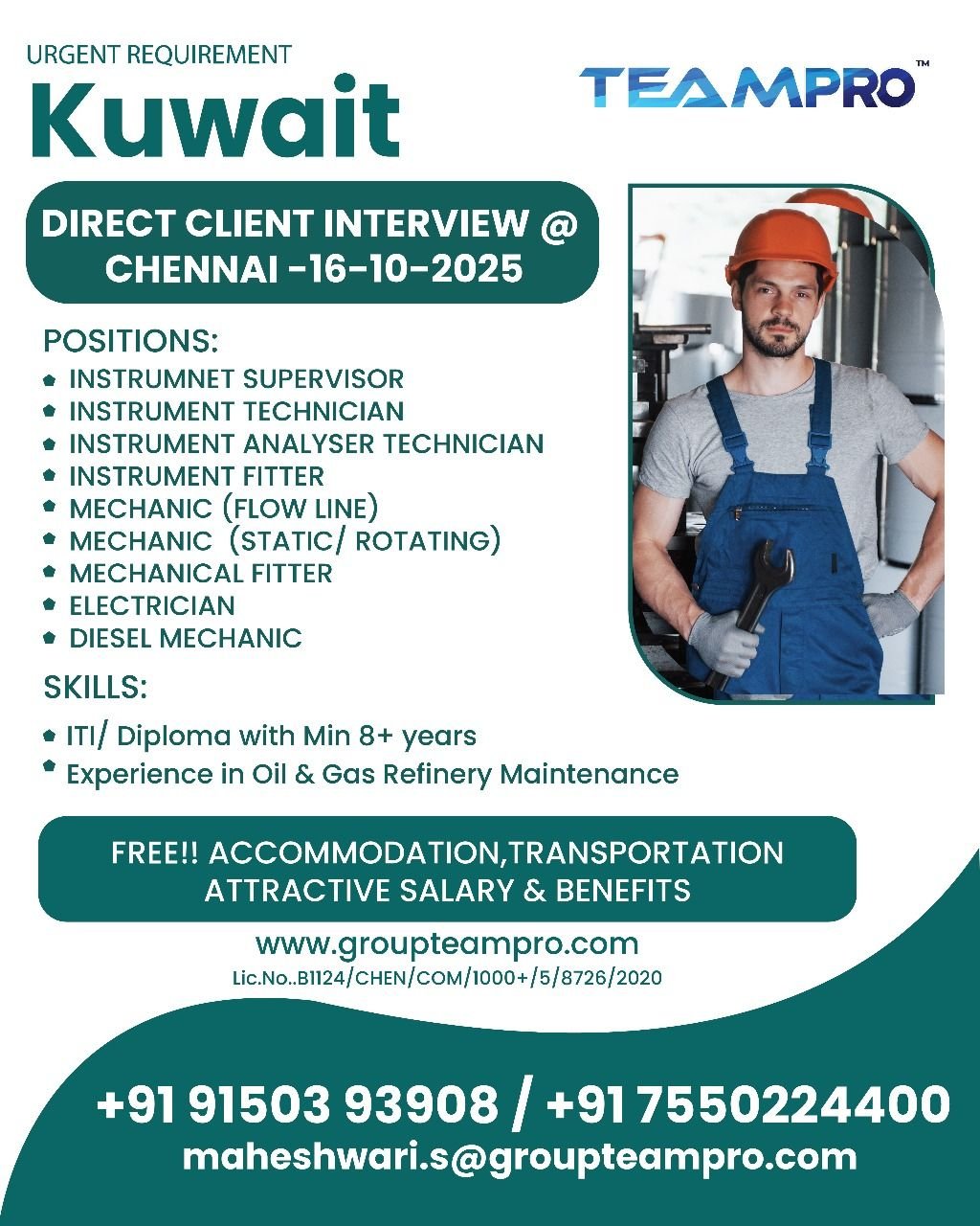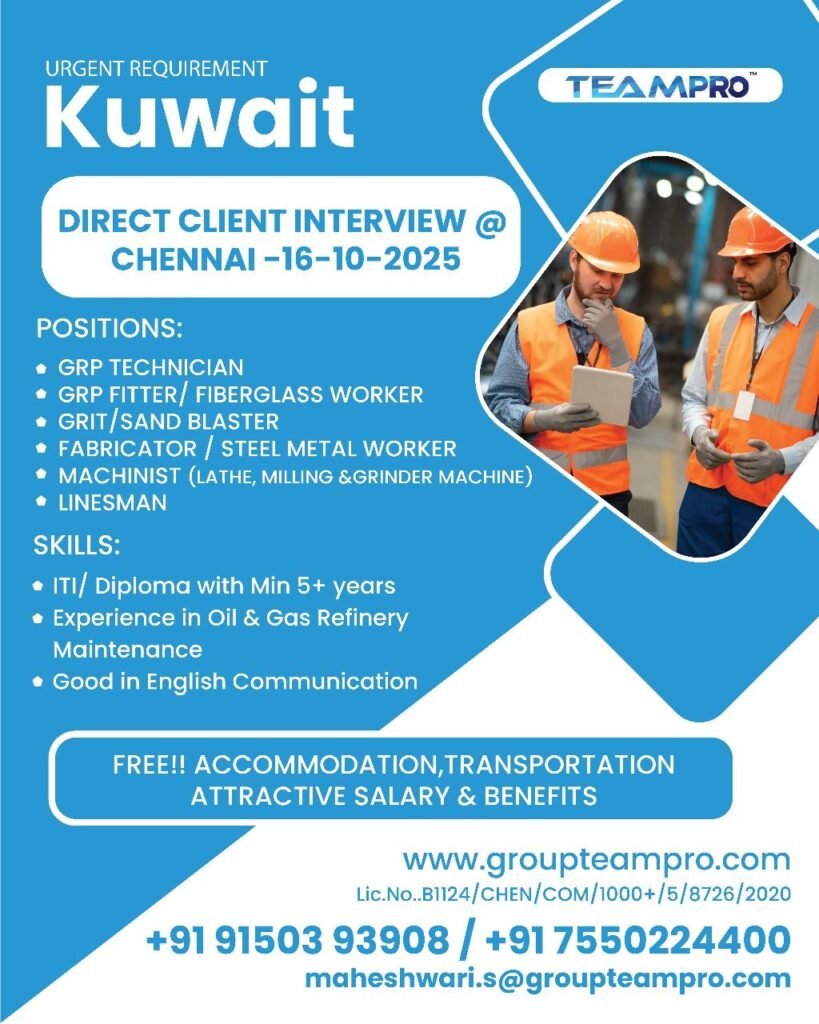 Kuwait – hiring for multiple positions in the Oil & Gas Refinery Maintenance Project