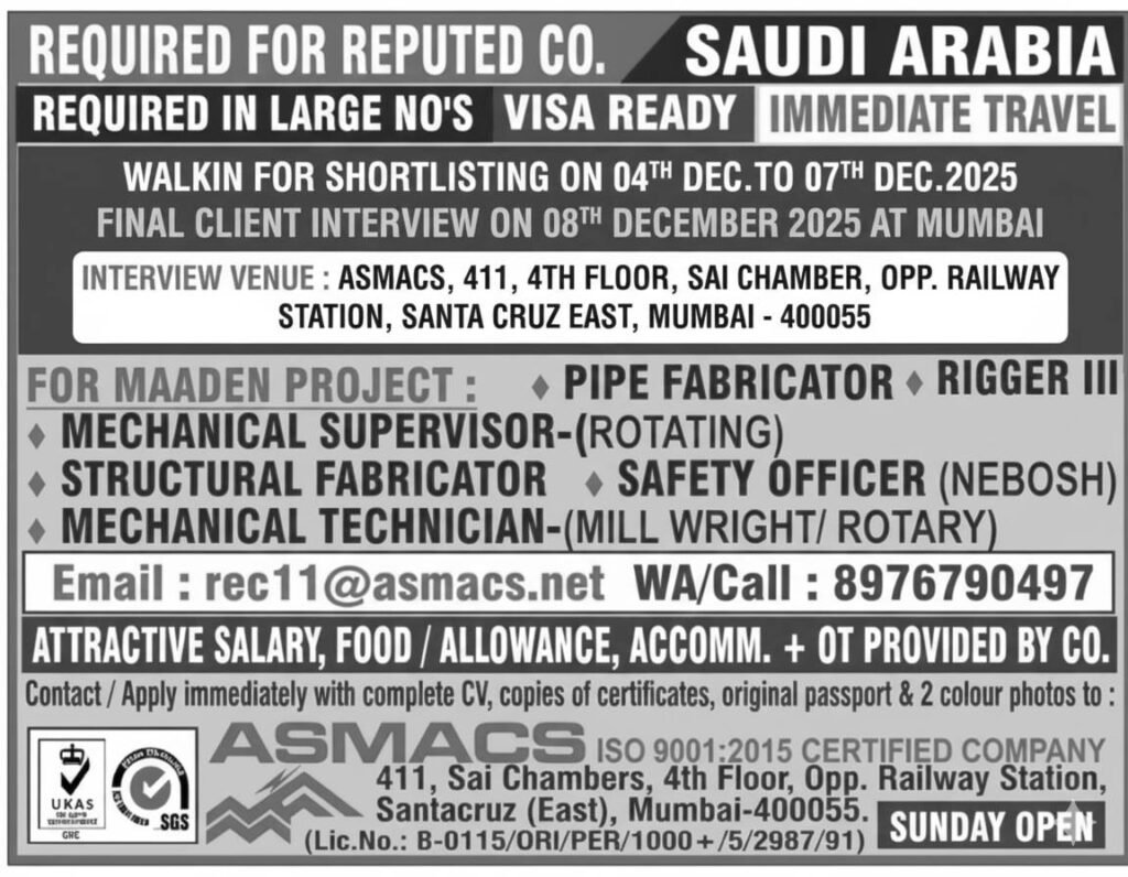 Read the ad to know more about the vacancies and the qualifications / Experience reqd. | Read the Ad carefully before you apply.