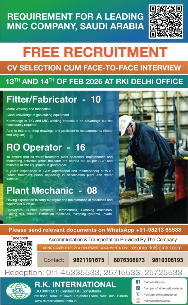 Large Nos. of Vacancy For Saudi Arabia & Kuwait – Apply Today