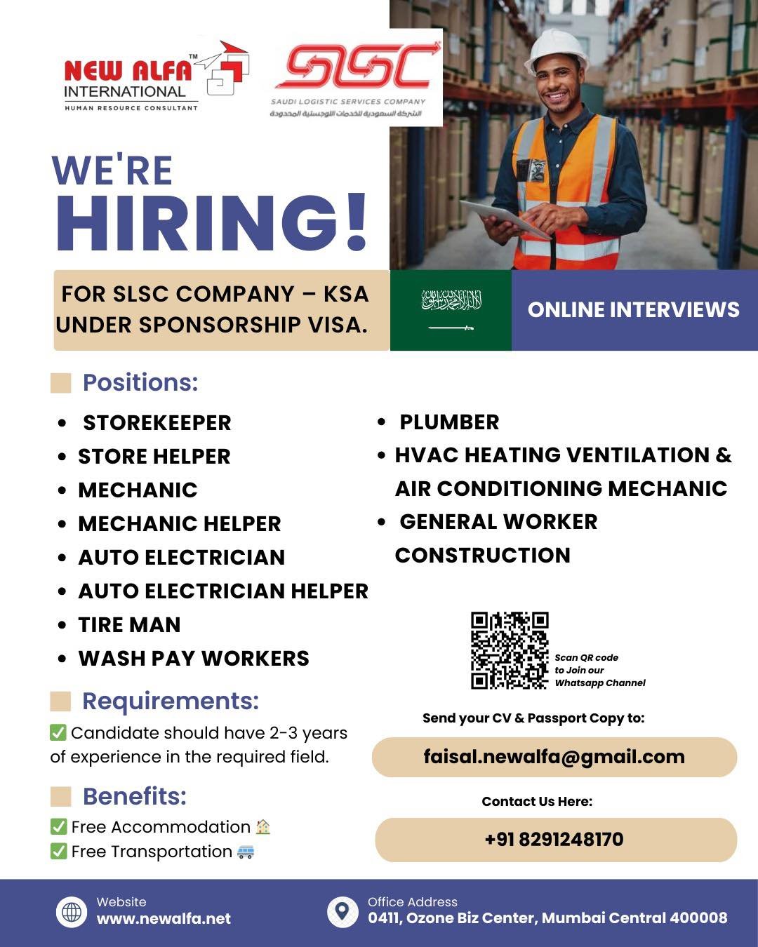 Urgent Logistics & Maintenance Jobs in Saudi Arabia: Online Interviews for SLSC Company